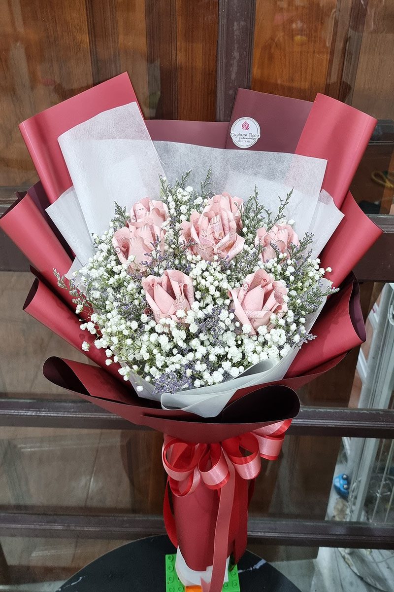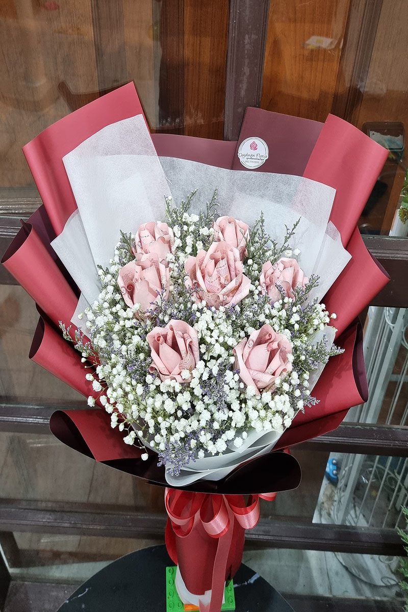 ช่อแบงค์ร้อยพับดอกกุหลาบ