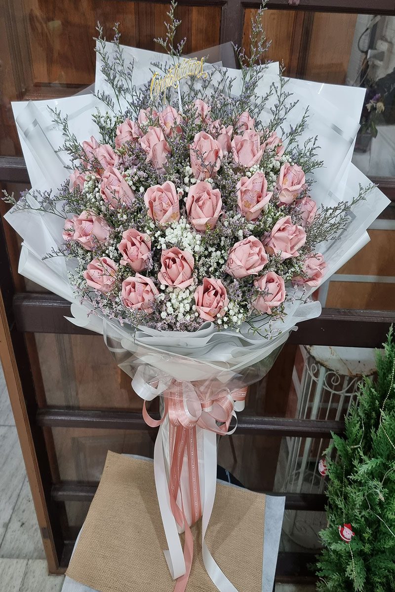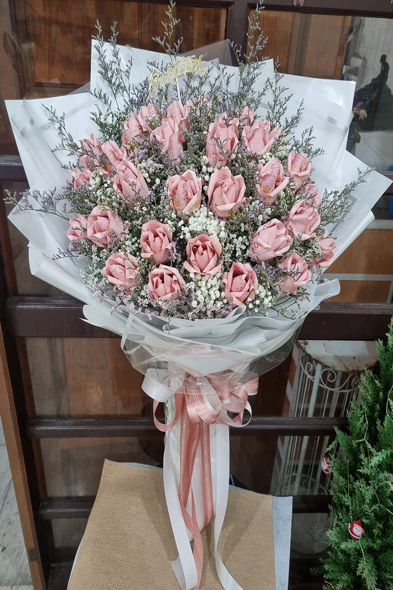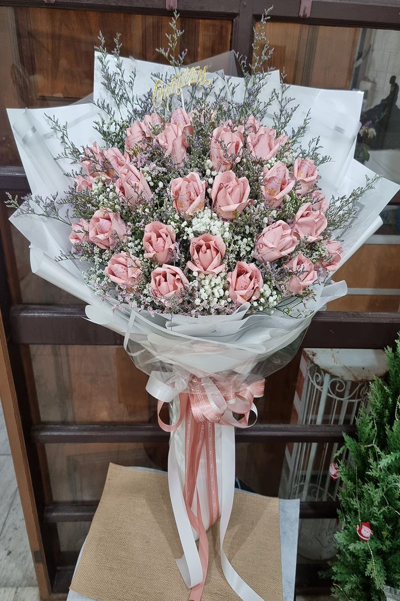 ช่อแบงค์พับเป็นดอกกุหลาบ