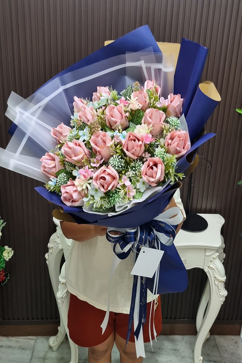 สามารถปรับเปลี่ยนเป็นดอกไม้สดได้  หากต้องการเปลี่ยนแจ้งทางร้านเพื่อปรับเปลี่ยน