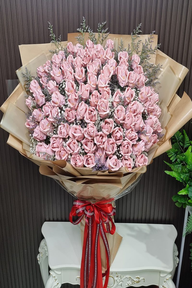 ช่อแบงค์พับดอกกุหลาบ ใช้แบงค์ทั้งหมด   30,000   บาท พับดอกกุหลาบ 100 ดอกในช่อ