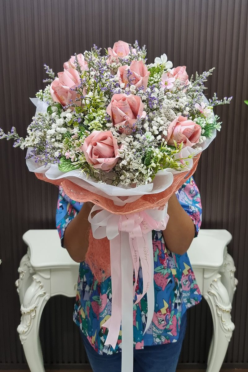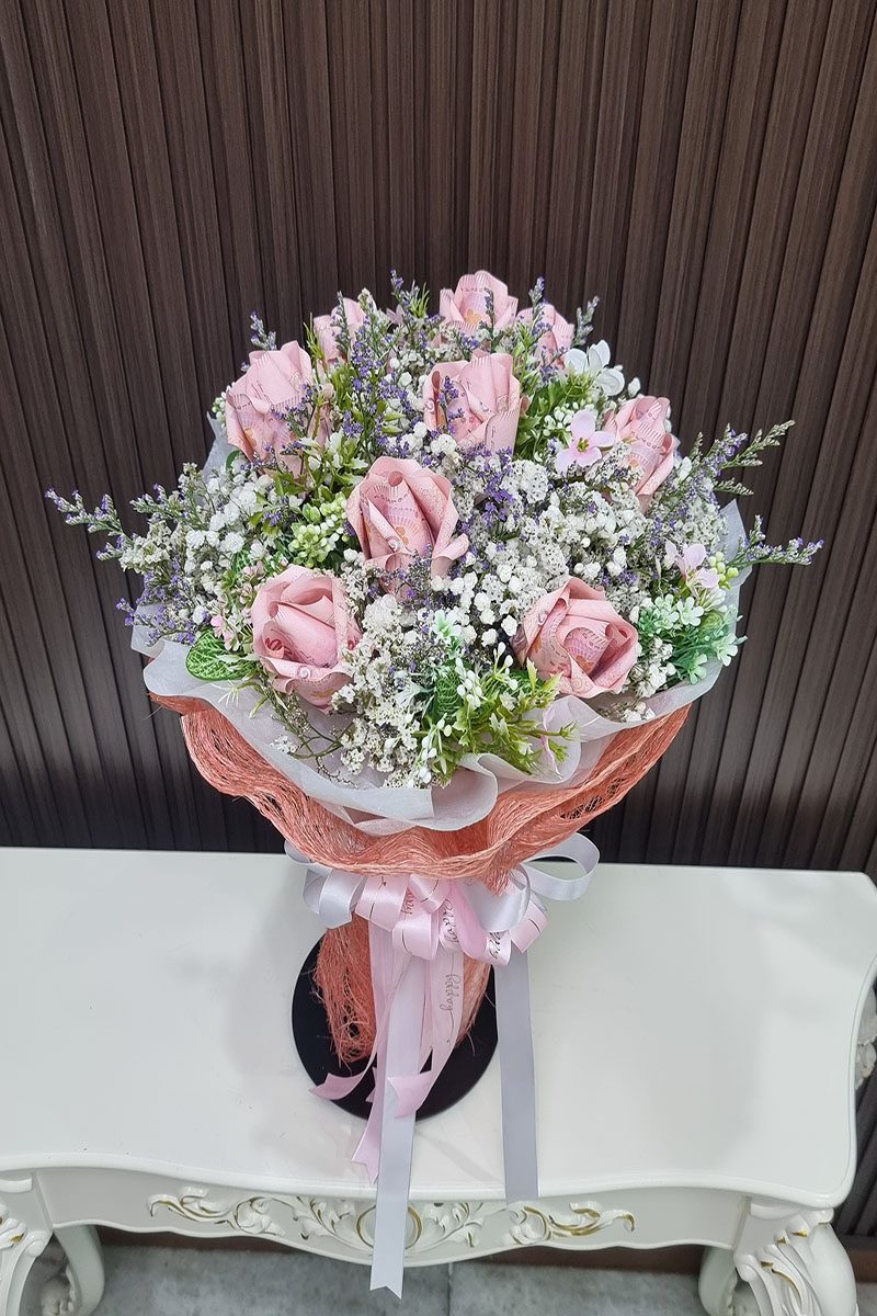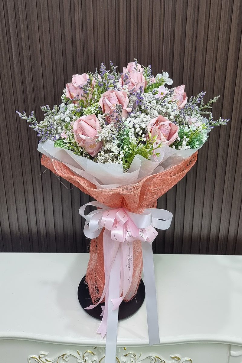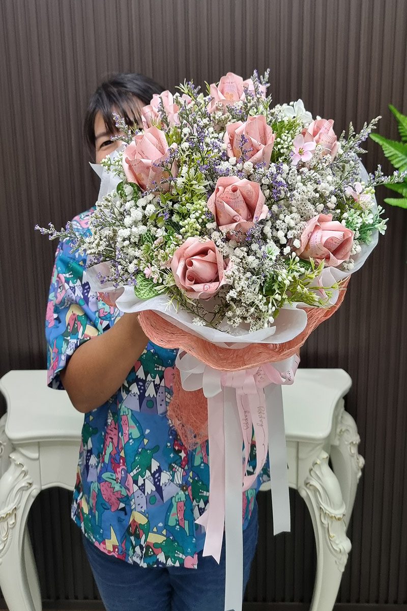 ช่อแบงค์พับกับดอกไม้ประดิษฐ์