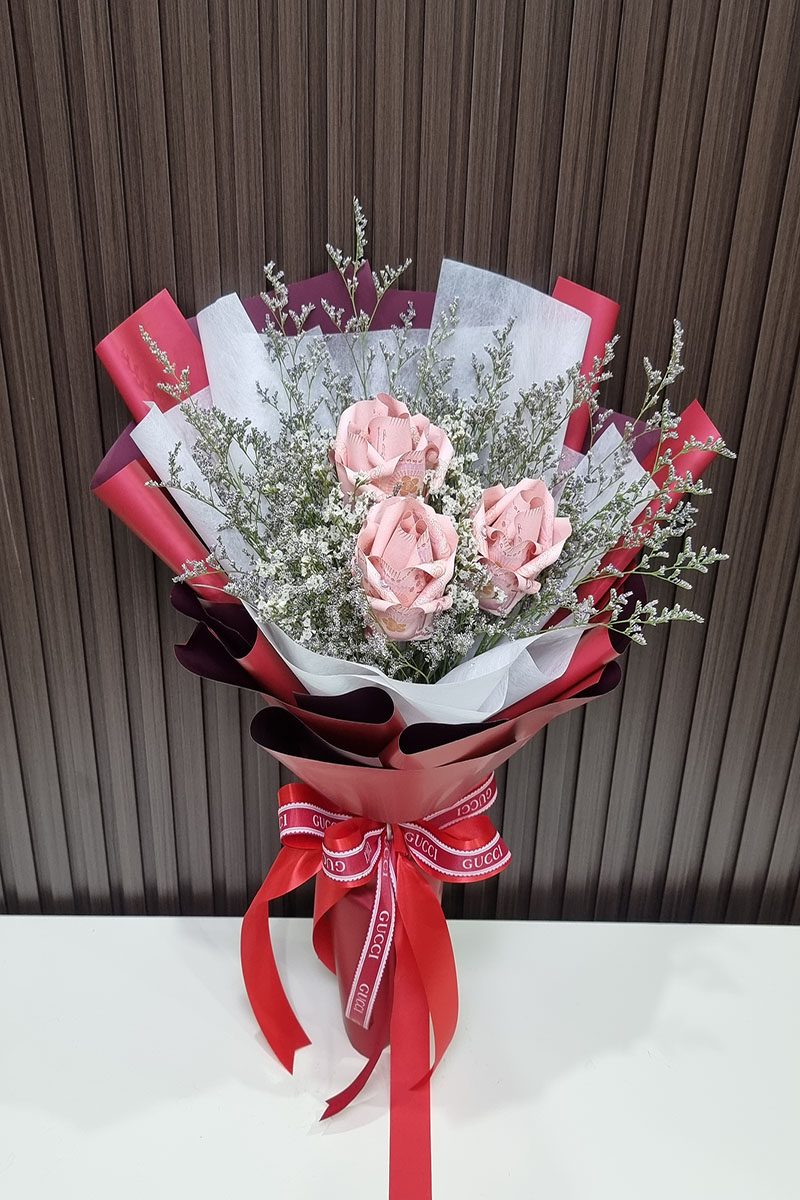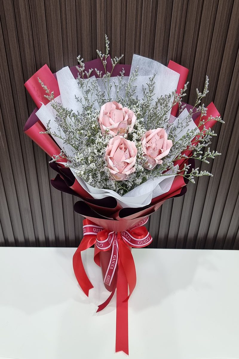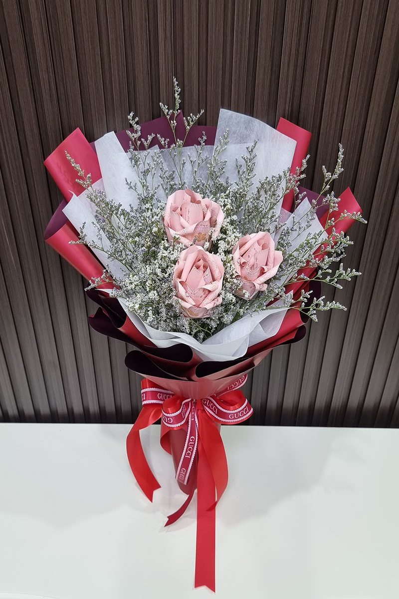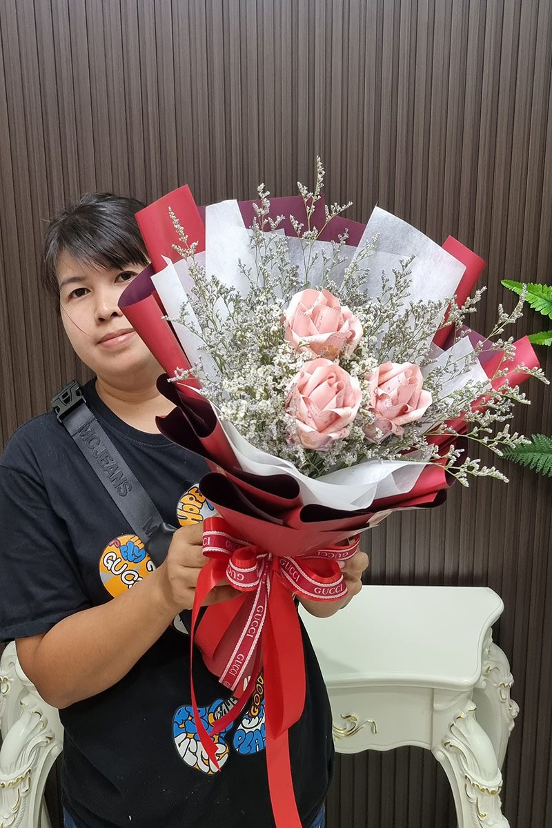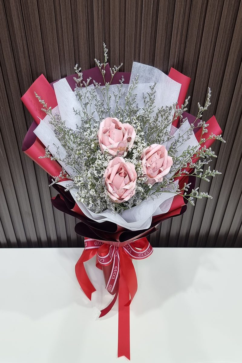 ช่อแบงค์พับเป็นดอกกุหลาบ
