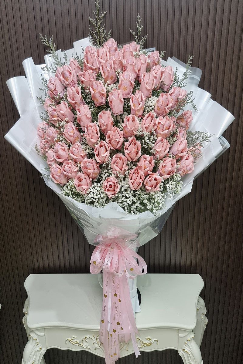 ดอกกุหลาบ 1 ดอก จะใช้แบงค์ 3 ใบ ในการพับกลีบ รวมทั้งหมด 67 ดอก (จะมี 1 ดอใช้แบงค์ 2 ใบพับกลีบ)