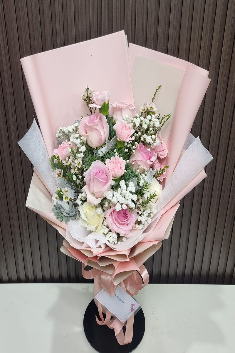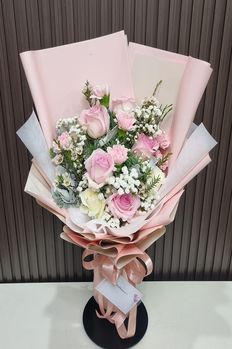 ช่อดอกไม้สดสีชมพู   ประกอบไปด้วยดอกไม้ หลักคือ