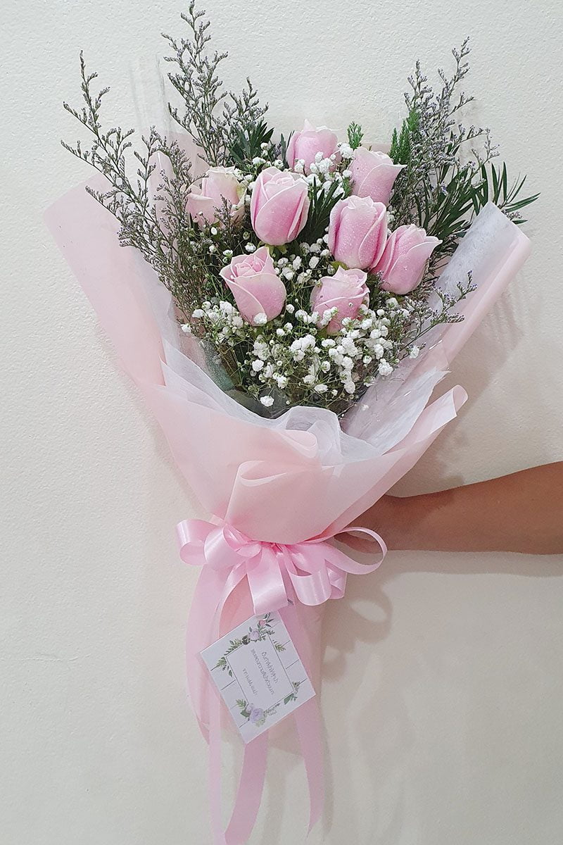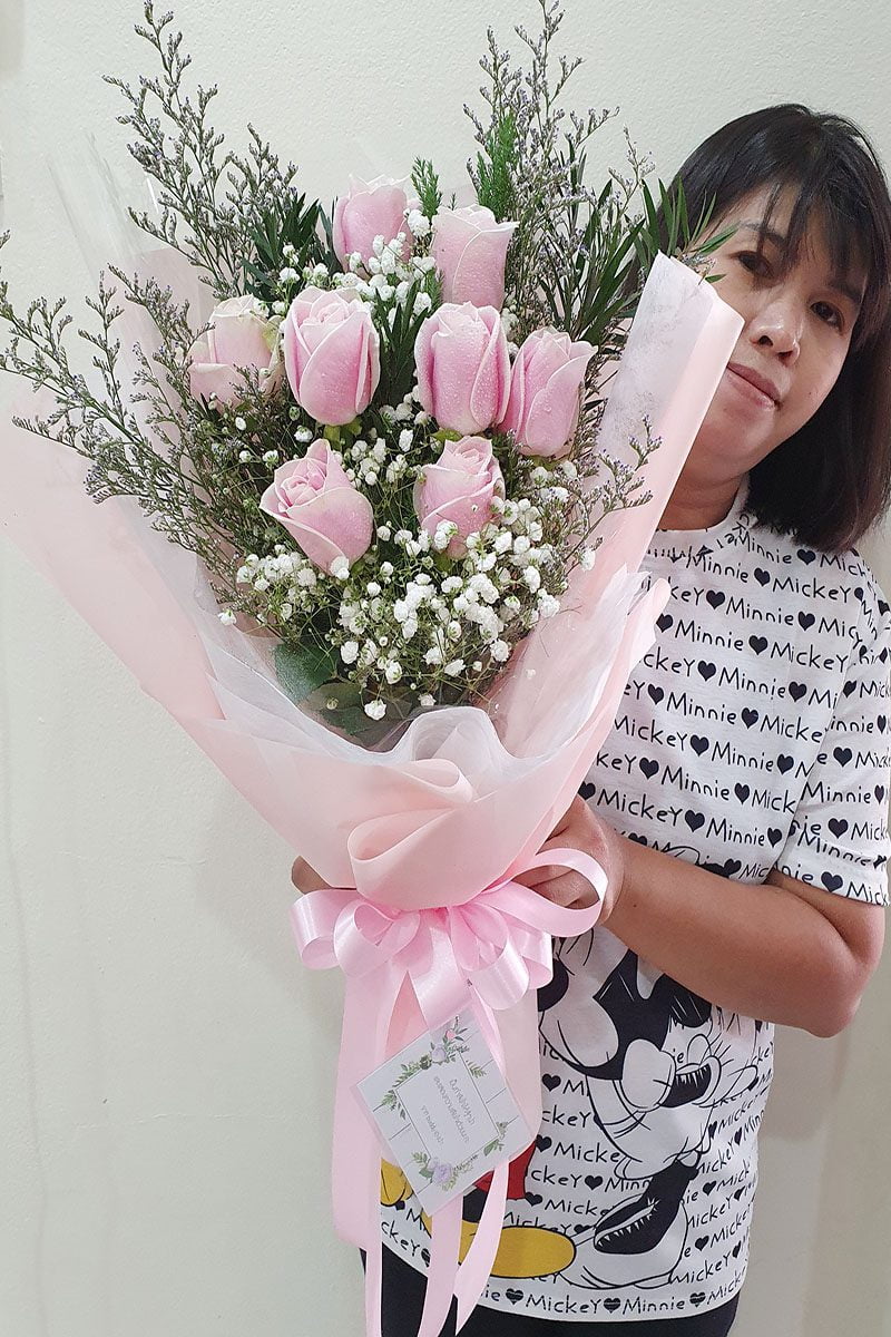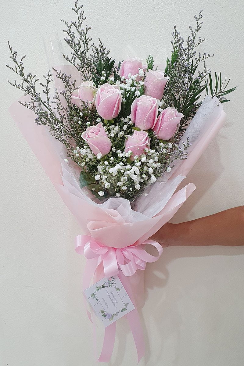 ช่อดอกกุหลาบสีชมพู 8 ดอก