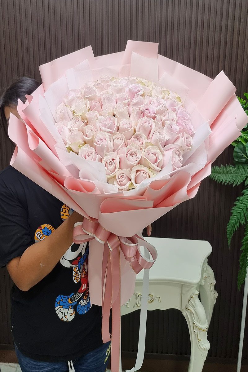 ช่อดอกกุหลาบสีชมพู 60 ดอก