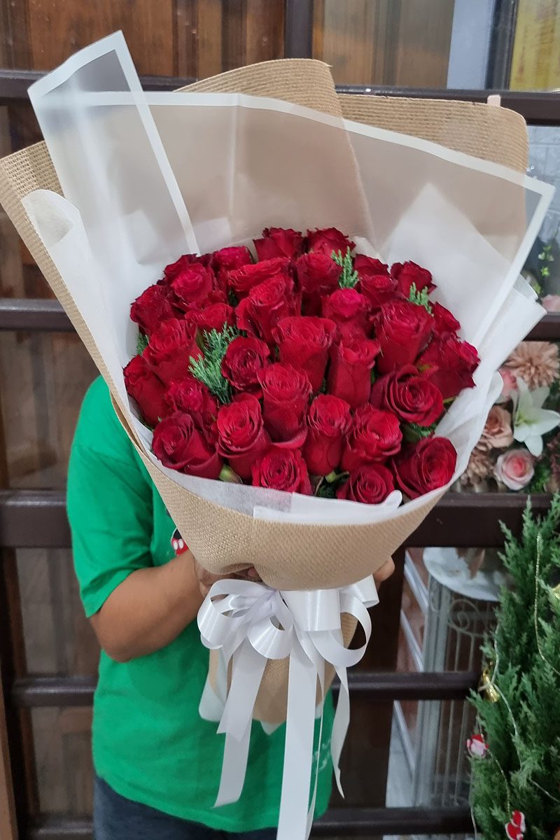 ช่อดอกกุหลาบสีแดง 30 ดอก