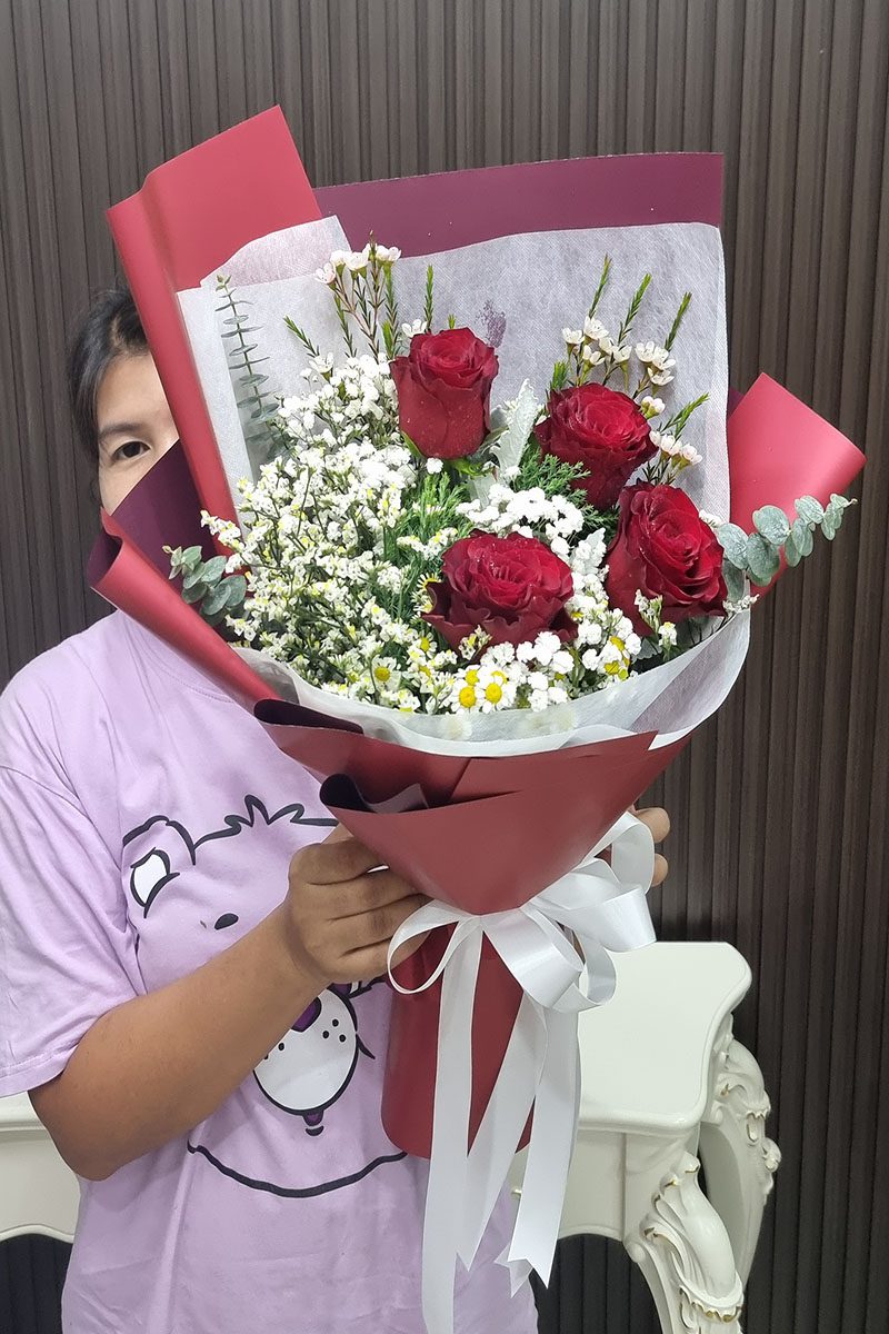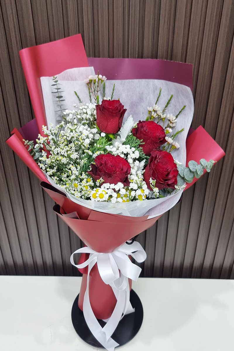 ช่อดอกกุหลาบสีแดง 4 ดอก