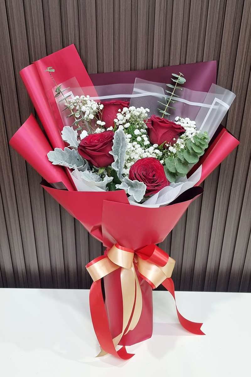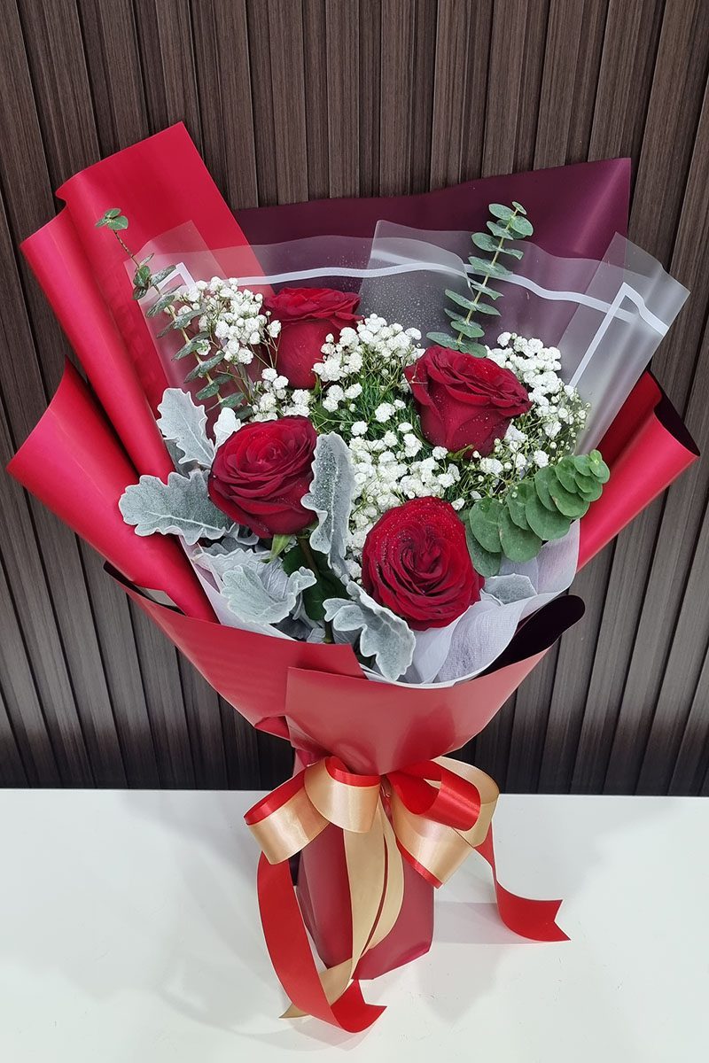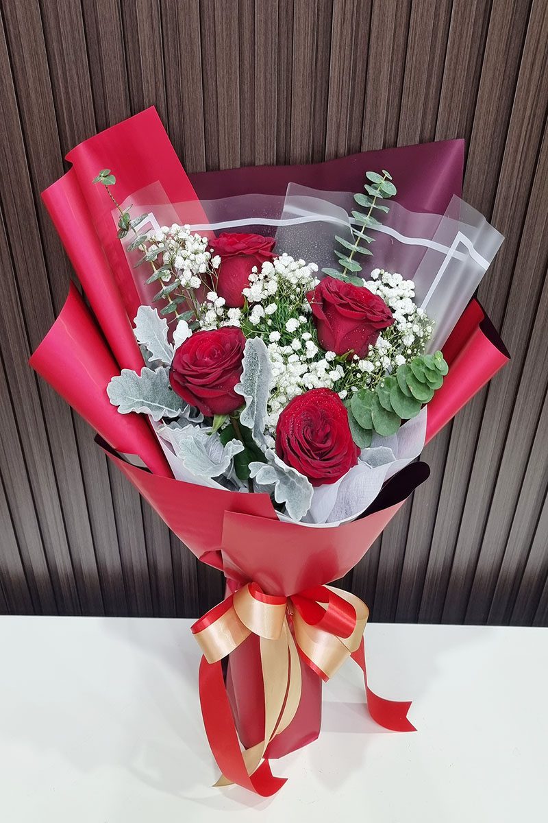 ช่อดอกกุหลาบสีแดง 4 ดอก