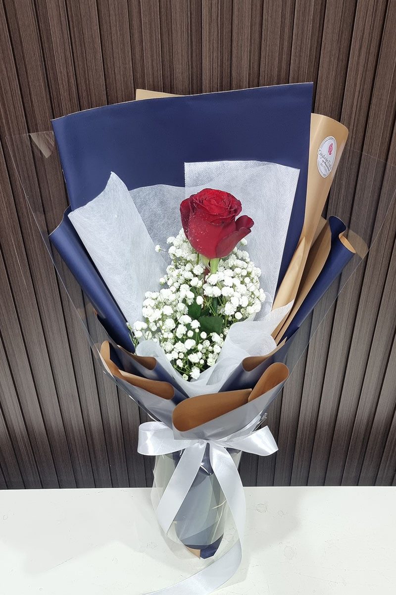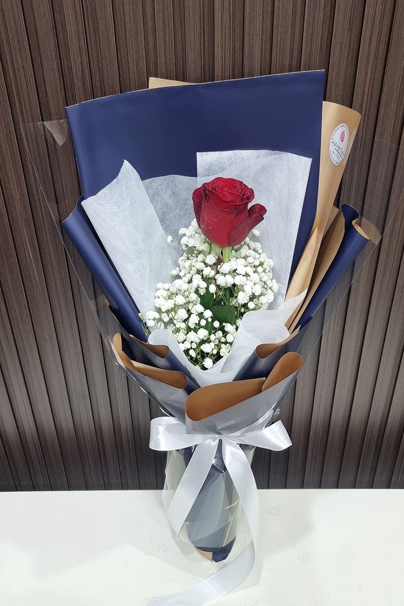 ความหมาย: ช่อดอกกุหลาบสีแดง สื่อถึง ความรัก ความโรแมนติก ความลุ่มหลง และ ความปรารถนา เหมาะสำหรับมอบให้กับคนรัก คู่รัก หรือคนที่คุณรู้สึกพิเศษ ในโอกาสต่างๆ เช่น วันวาเลนไทน์ วันครบรอบ หรือวันเกิด