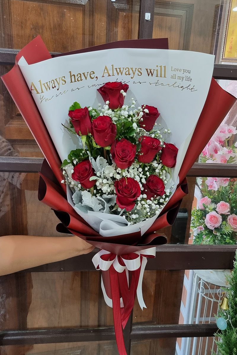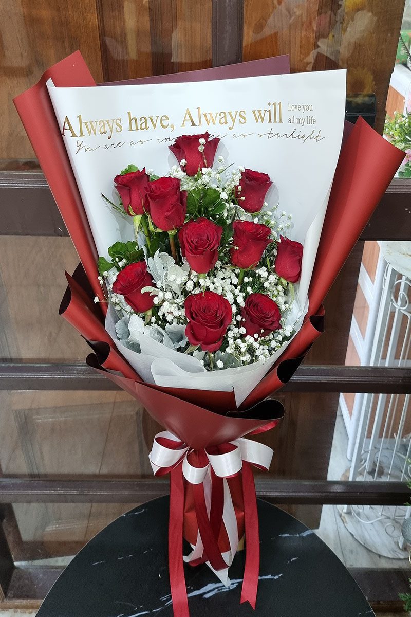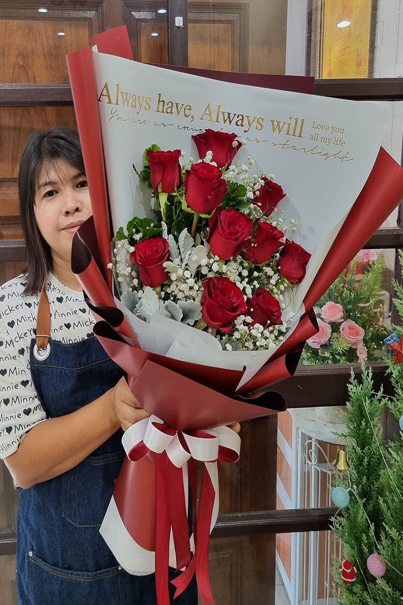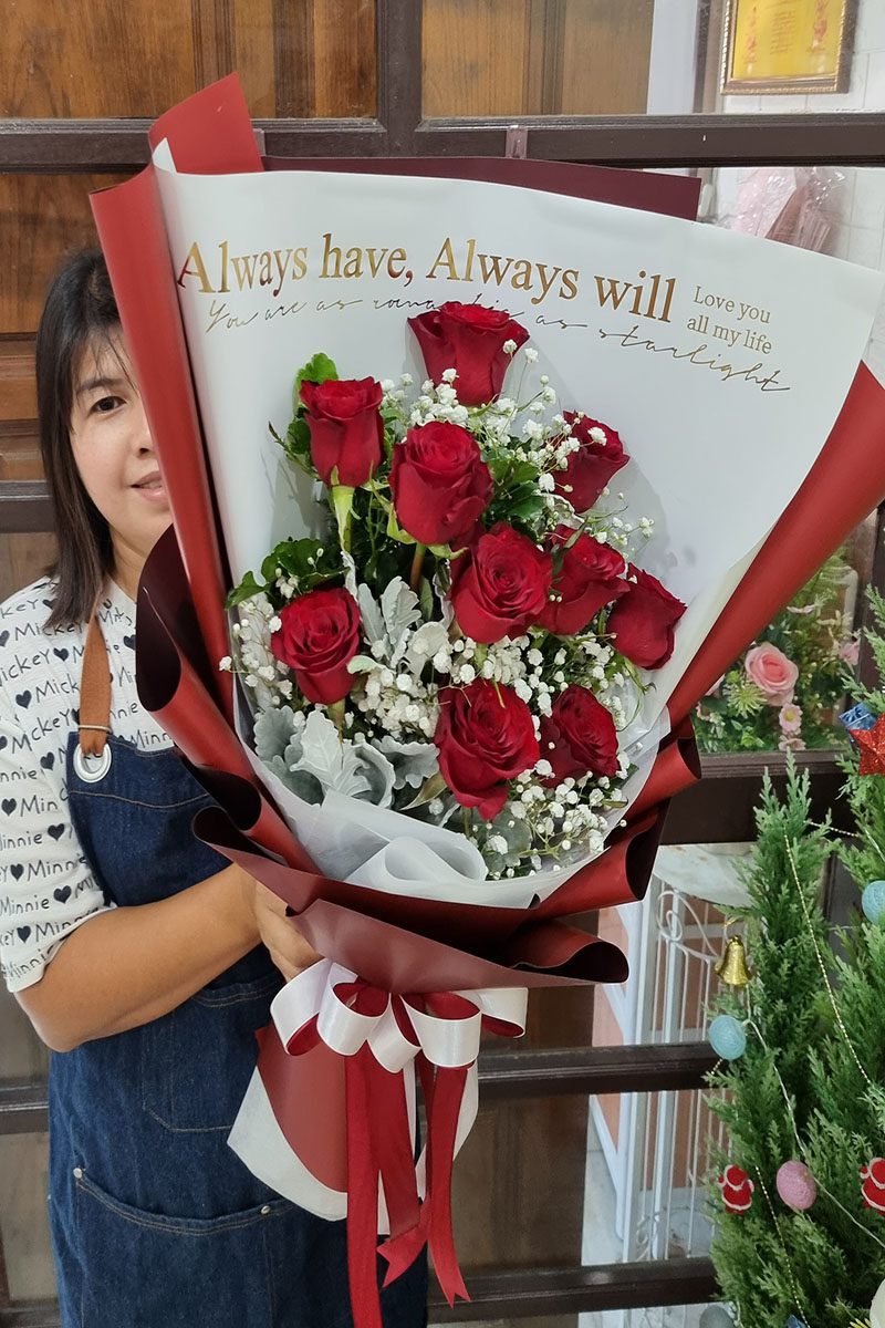 ช่อดอกกุหลาบสีแดง 10 ดอก