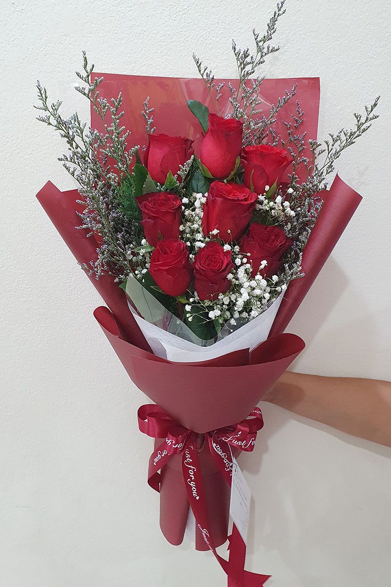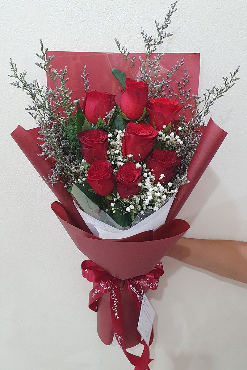 ช่อดอกกุหลาบสีแดง 8 ดอก