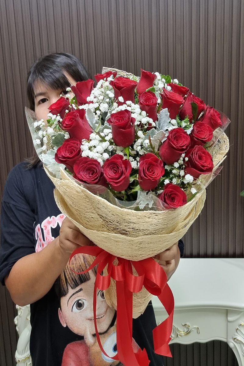 ช่อดอกกุหลาบสีแดง 20 ดอก