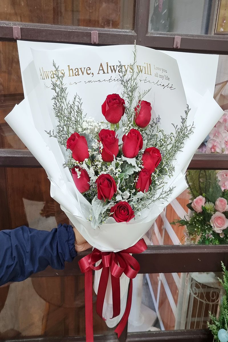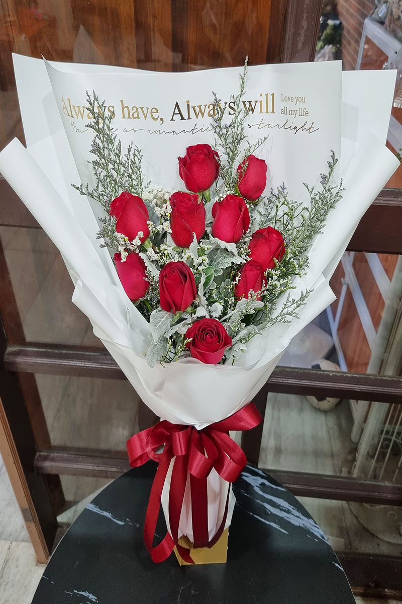 ช่อดอกกุหลาบสีแดง 10 ดอก