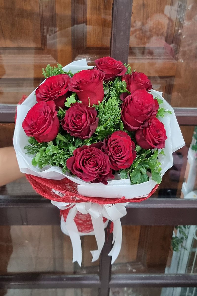 ช่อดอกกุหลาบสีแดง 10 ดอก