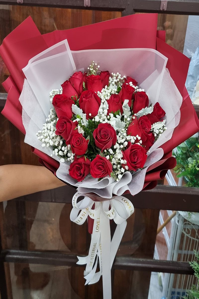 ช่อดอกกุหลาบสีแดง 20 ดอก