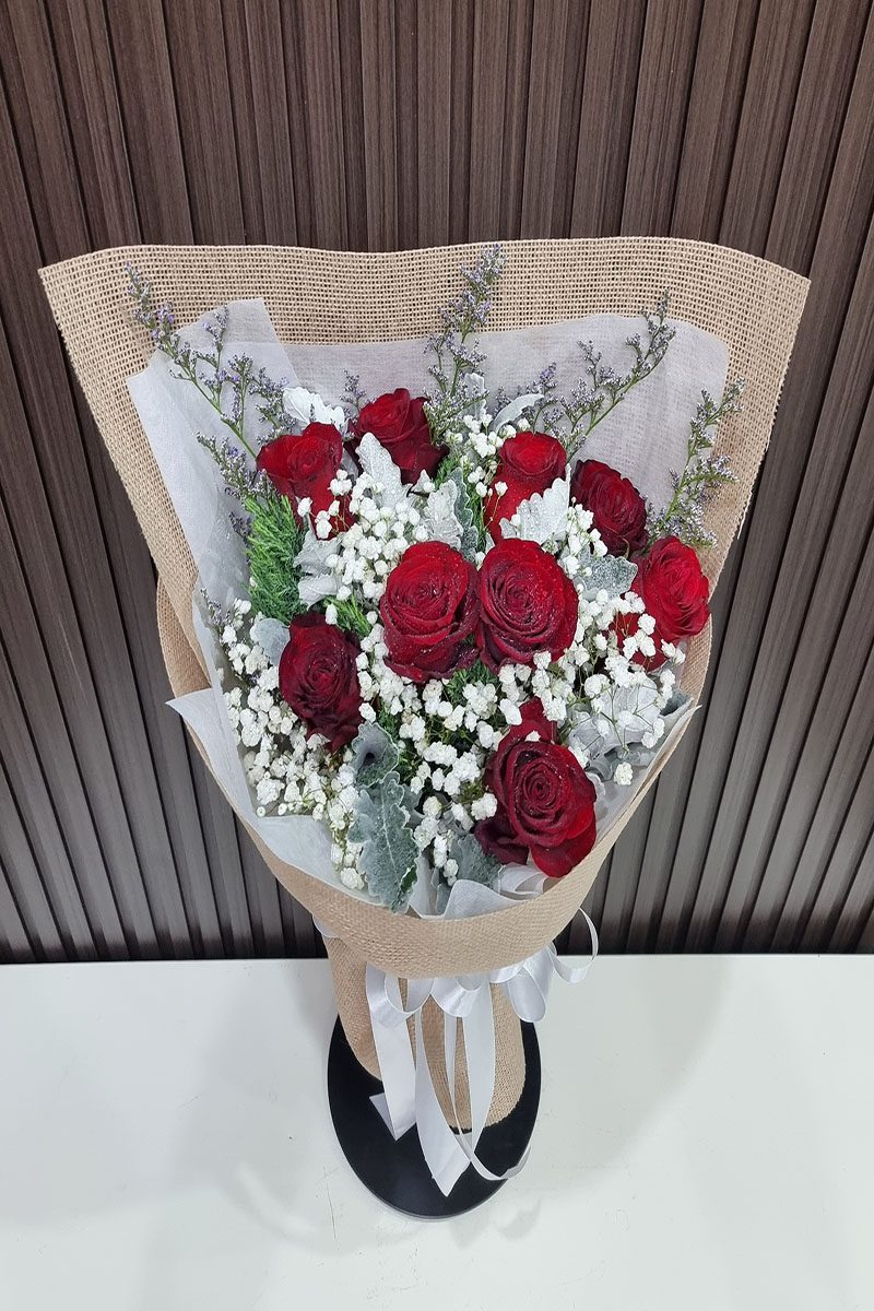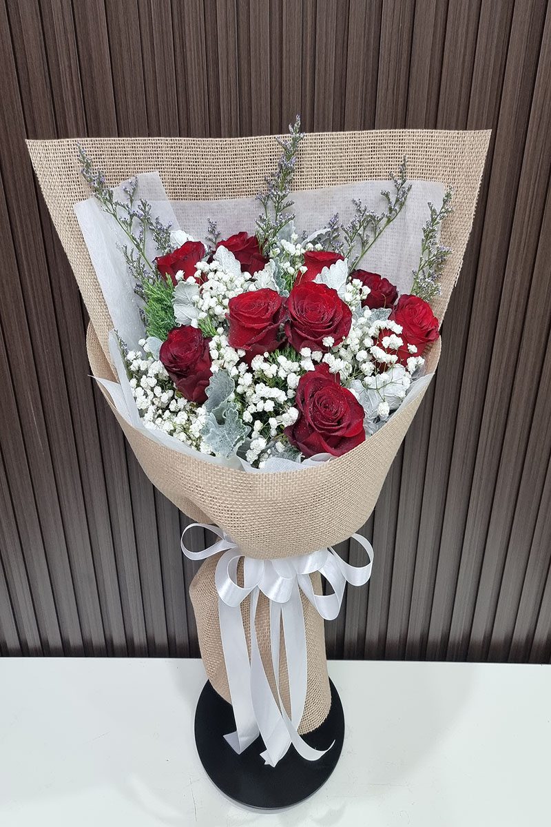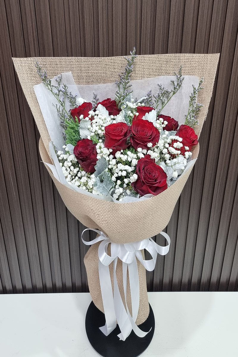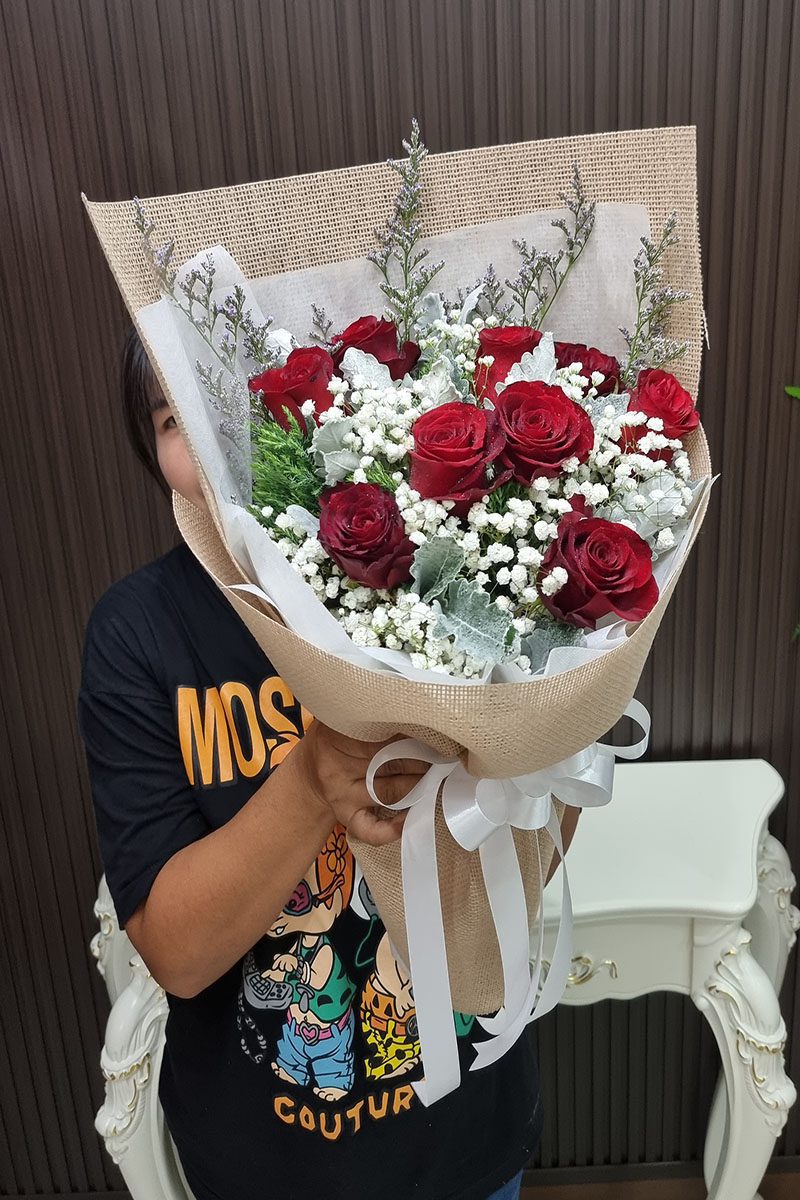 ช่อดอกกุหลาบสีแดง 9 ดอก