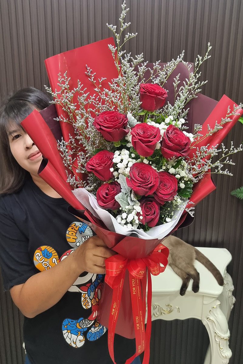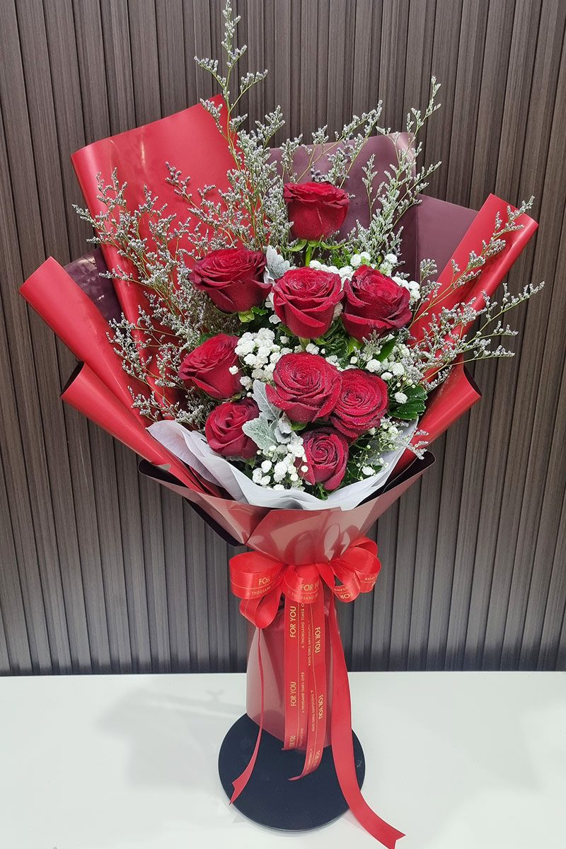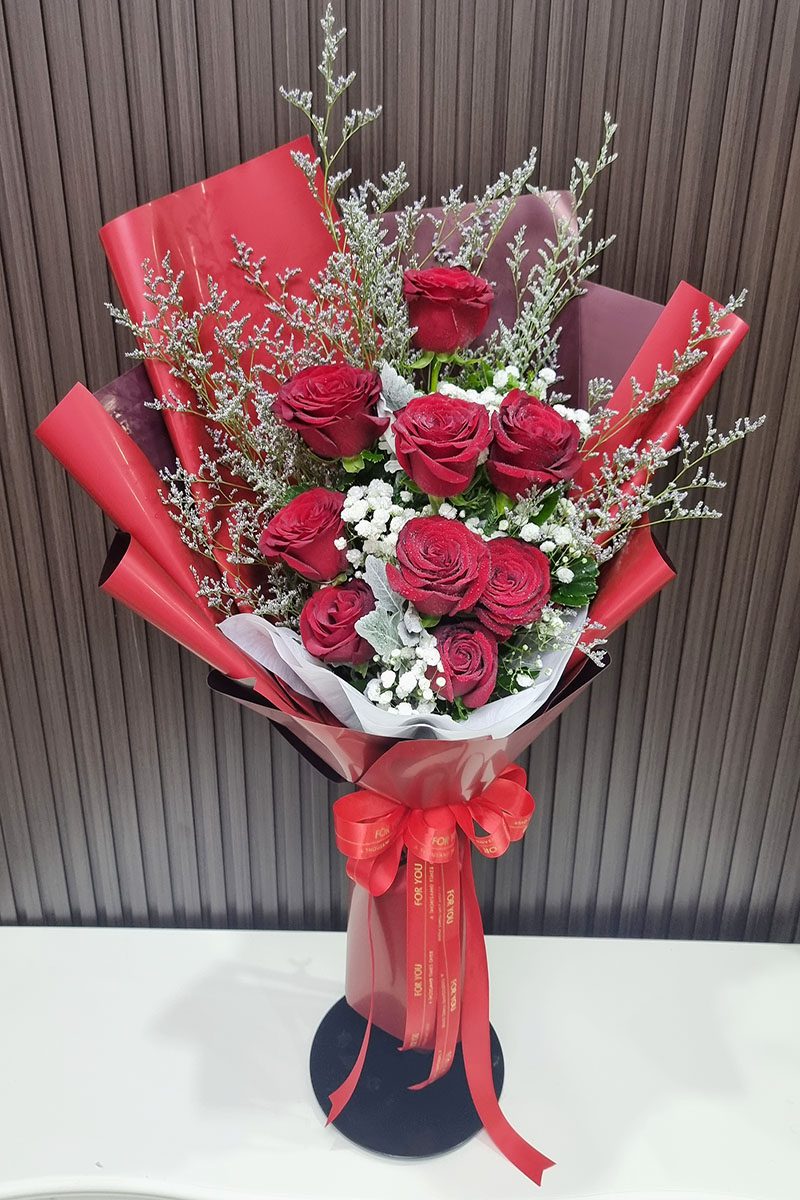 ช่อดอกกุหลาบสีแดง 9 ดอก