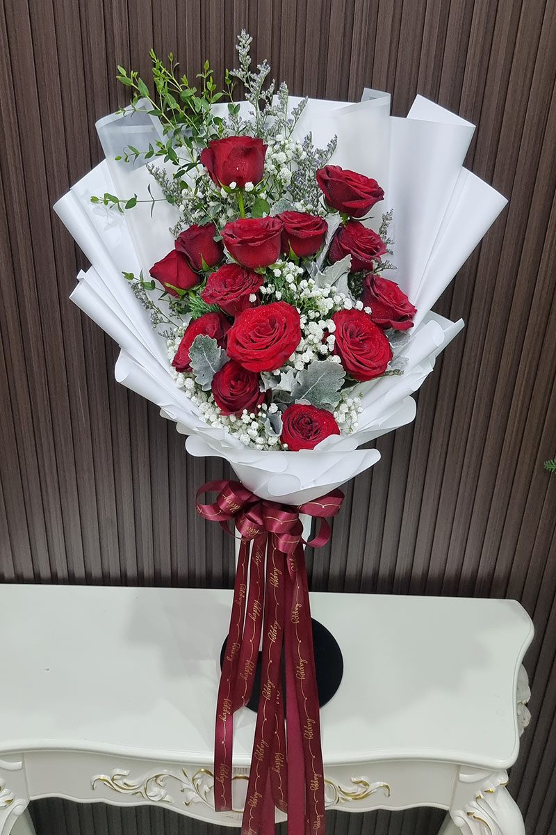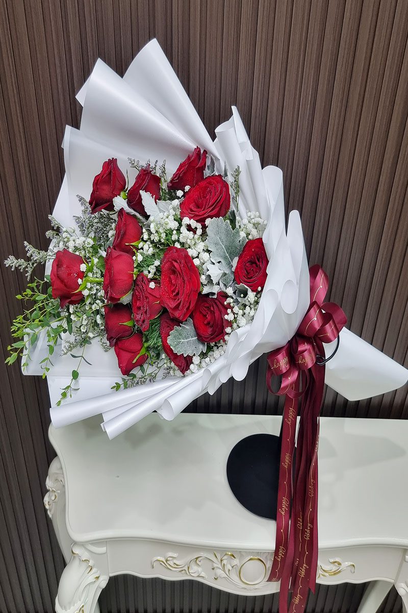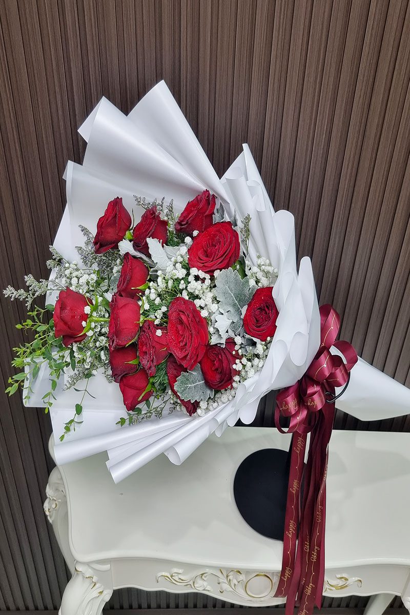 ความหมาย: ช่อดอกกุหลาบขาวแดง สื่อถึง ความรักที่สมบูรณ์แบบ ความรักที่ผสมผสานระหว่างความรักที่บริสุทธิ์ โรแมนติก เร่าร้อน และความภักดี เหมาะสำหรับมอบให้กับบุคคลพิเศษ ในโอกาสสำคัญต่างๆ เช่น วันครบรอบแต่งงาน วันวาเลนไทน์ หรือแสดงความยินดี