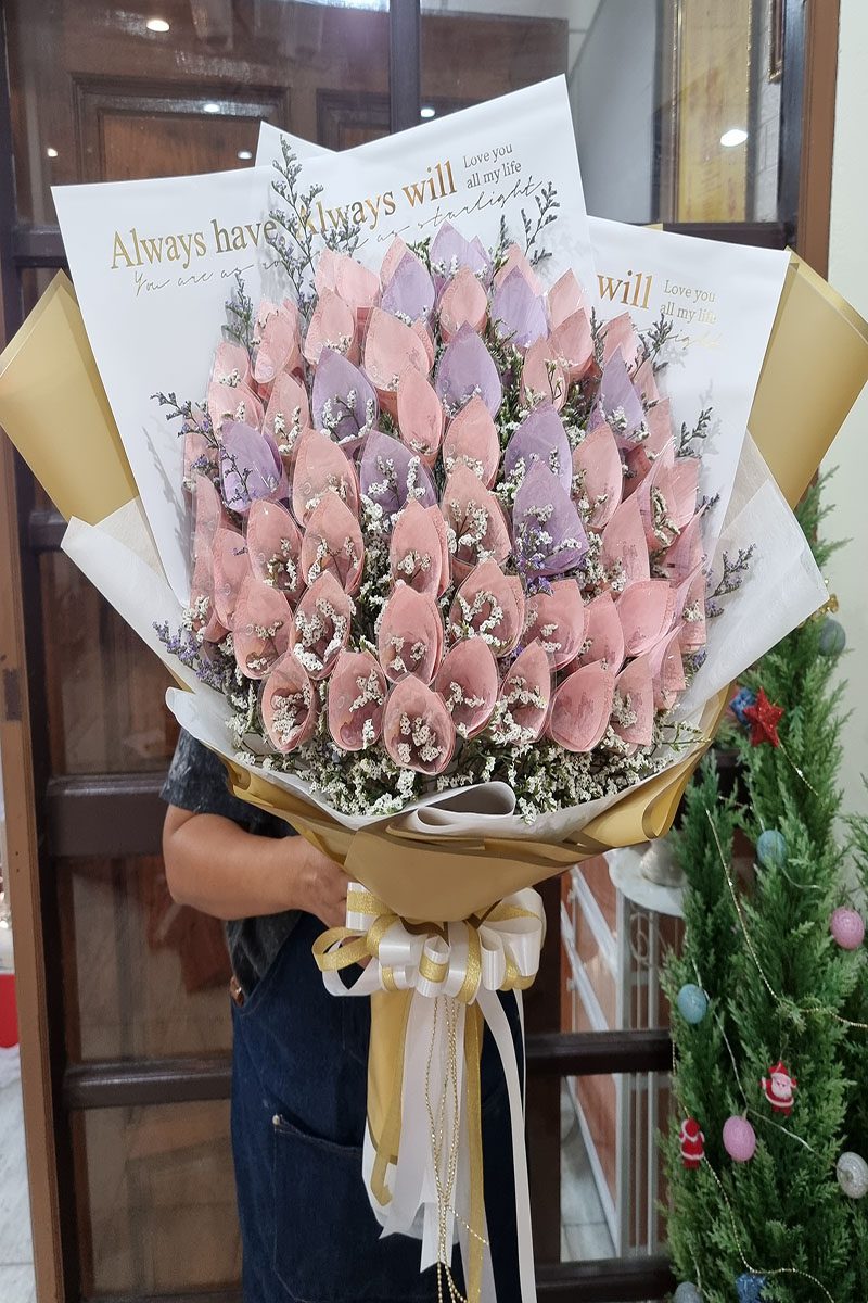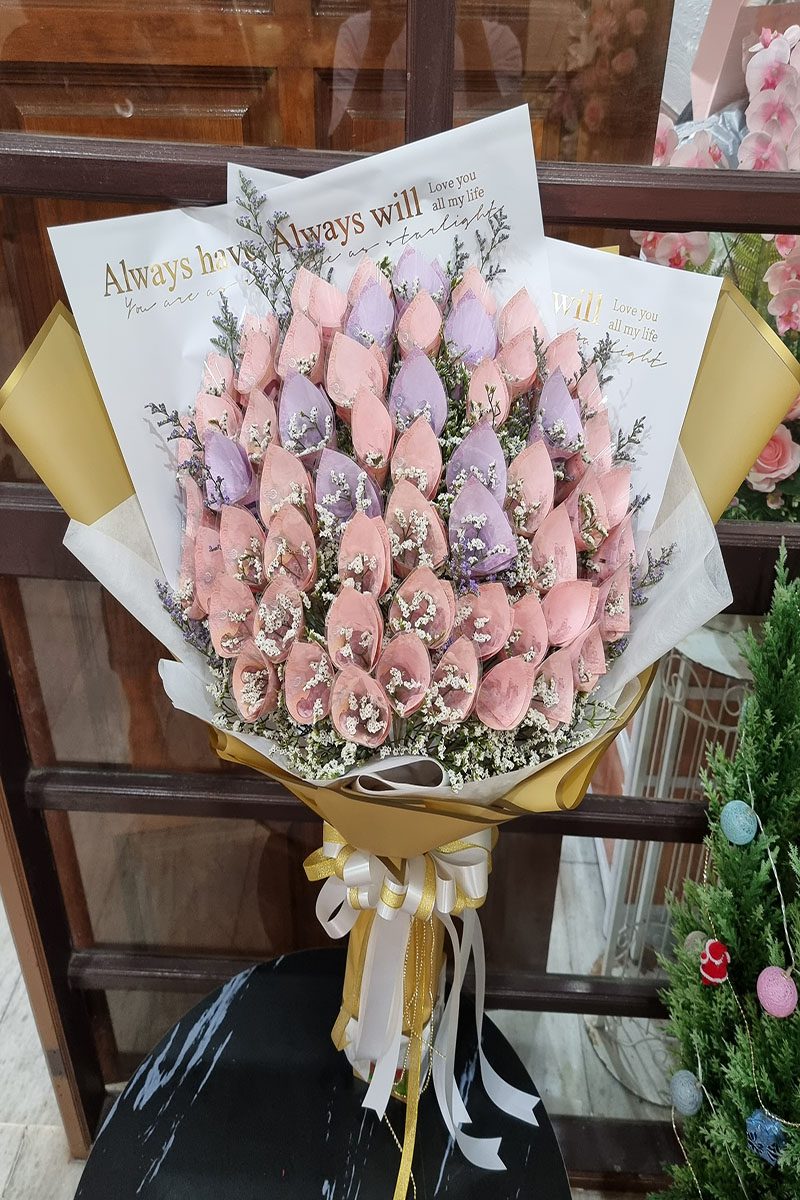 ระยะเวลาการจัดทำช่อ ประมาณ 1-2 ชม. หรือตามขนาดของช่อ