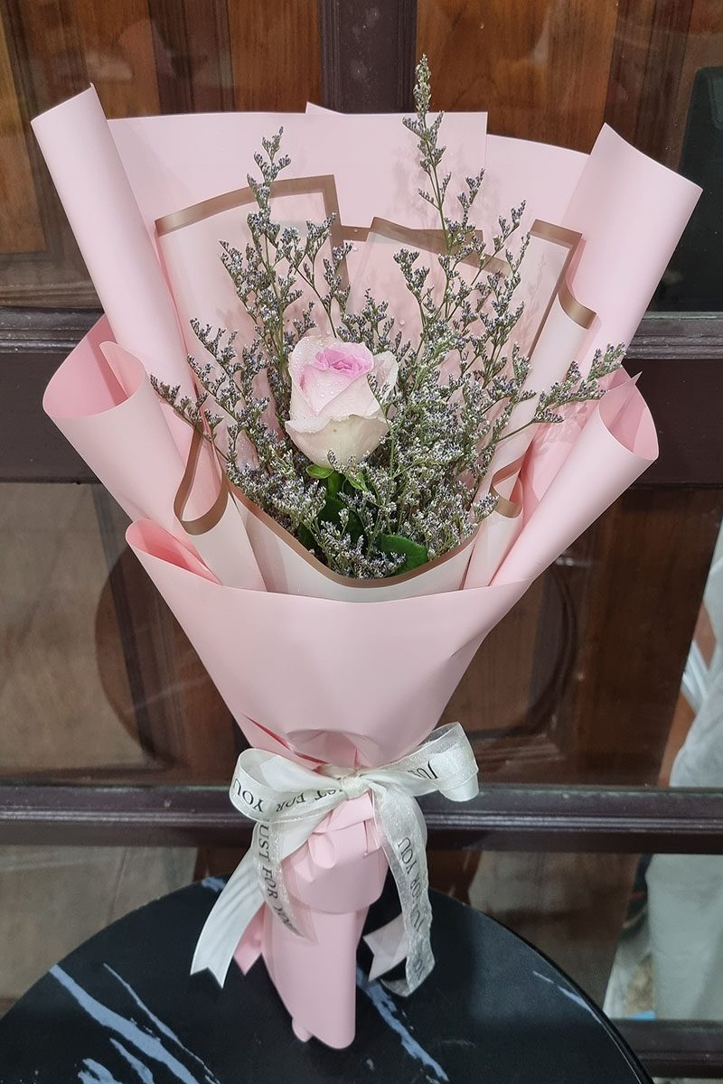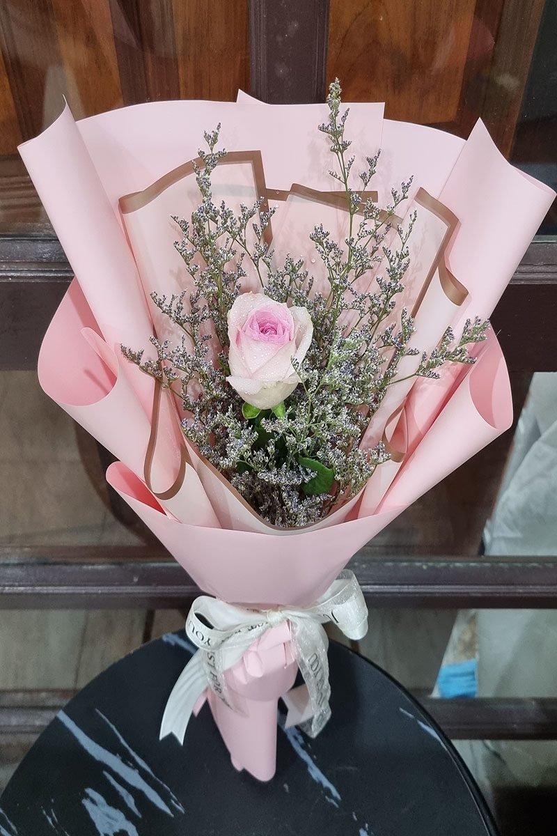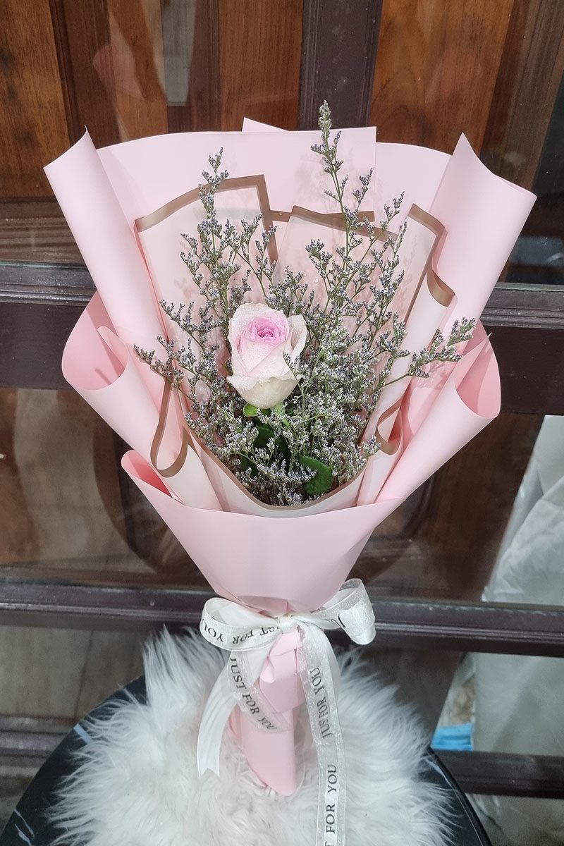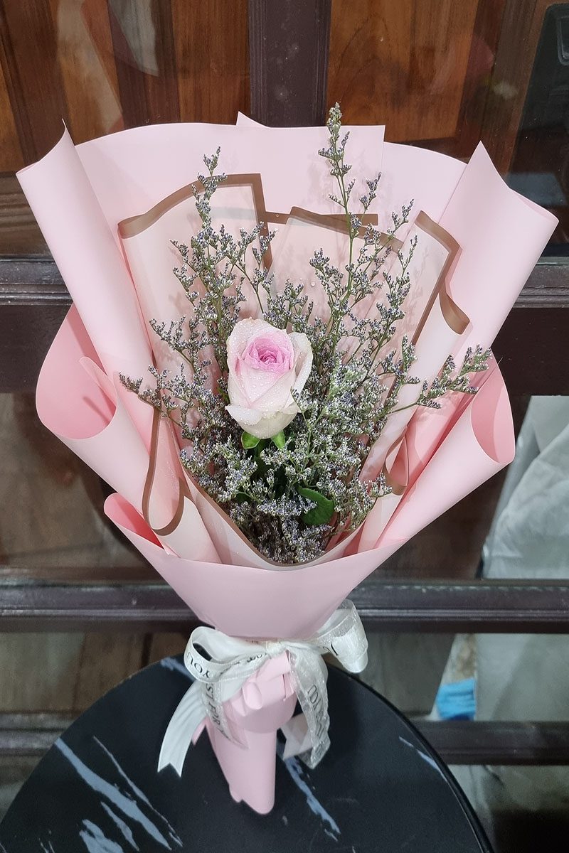 ช่อดอกกุหลาบสีชมพู 1 ดอก
