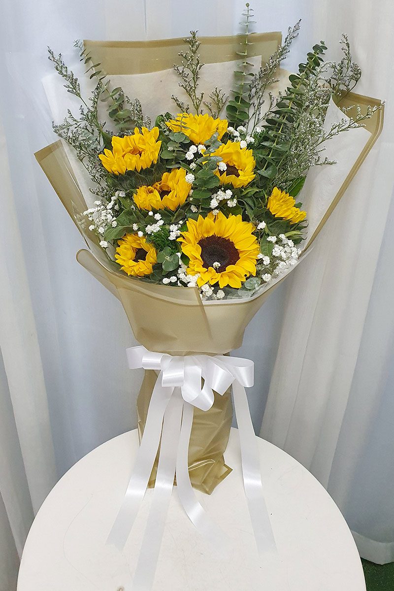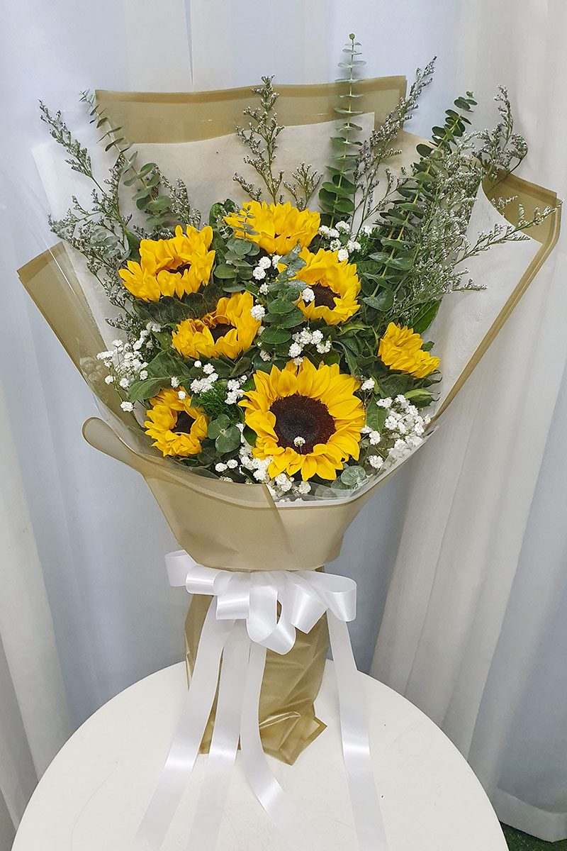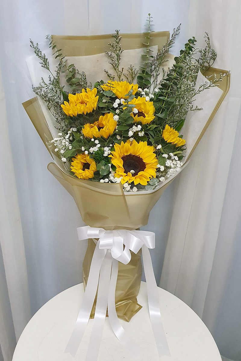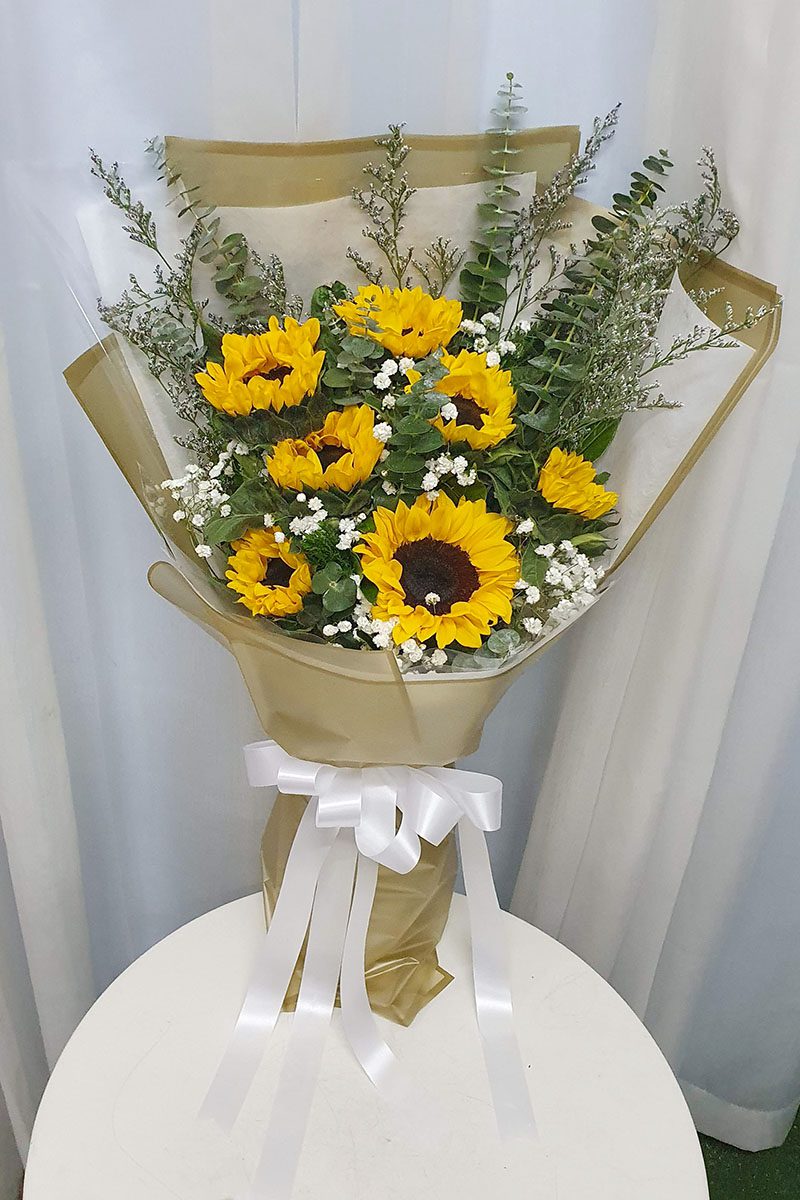 ดอกทานตะวัน 7 ดอก  จัดช่อ แซมดอกยิปซี แคสเปียร์