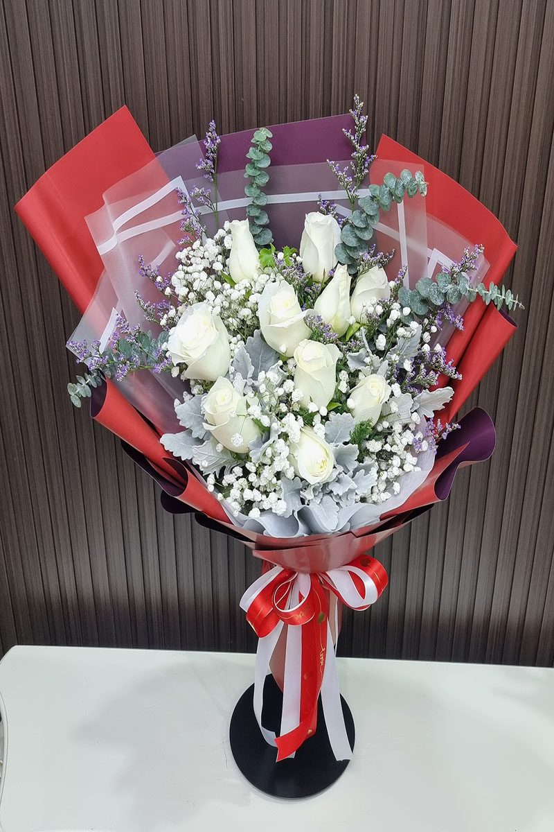ช่อดอกกุหลาบสีขาว 10 ดอก
