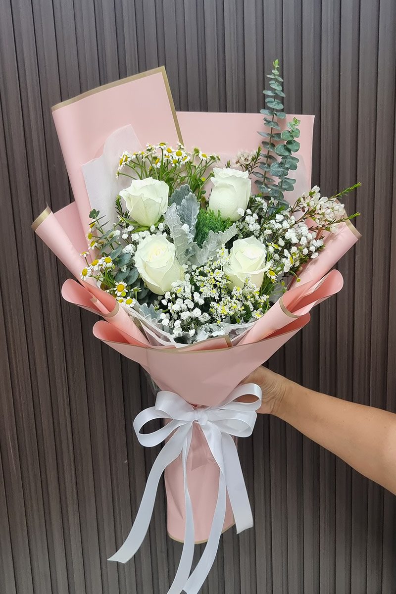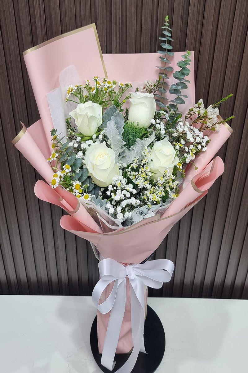 ช่อดอกกุหลาบสีขาว 4 ดอก