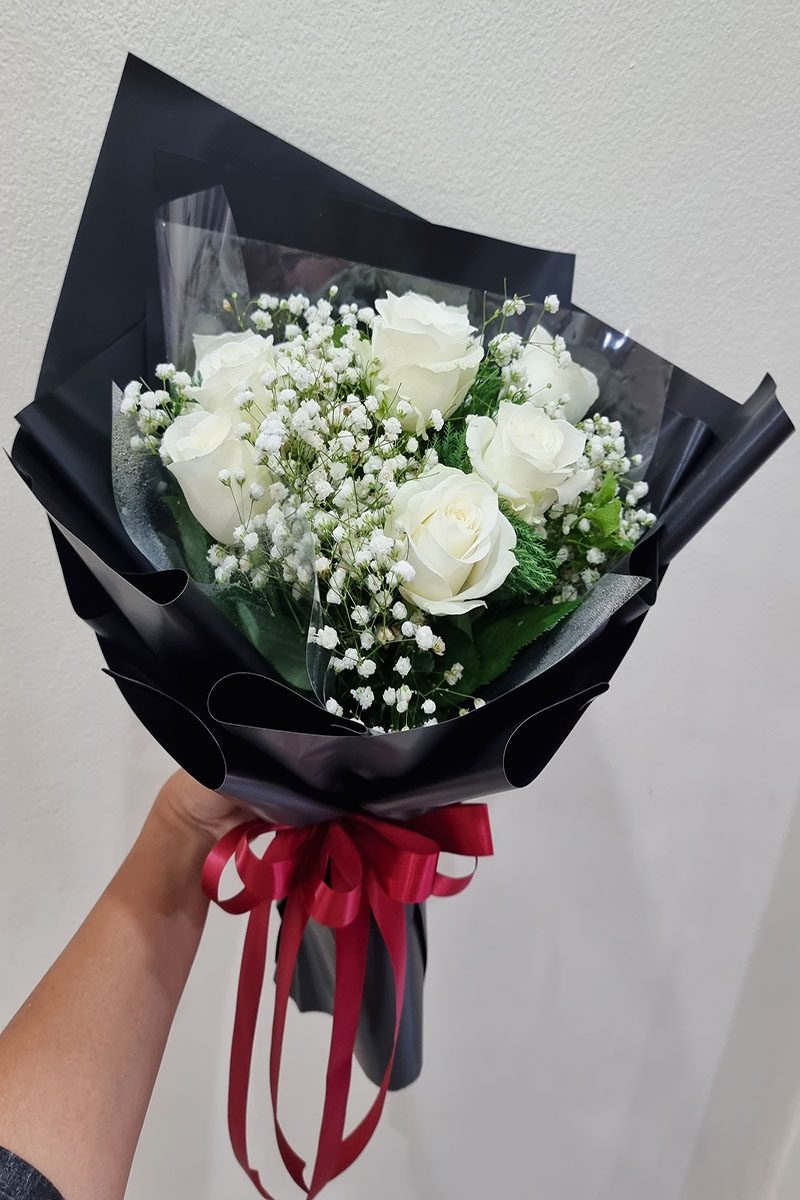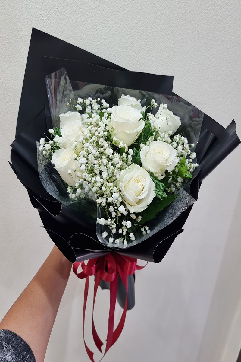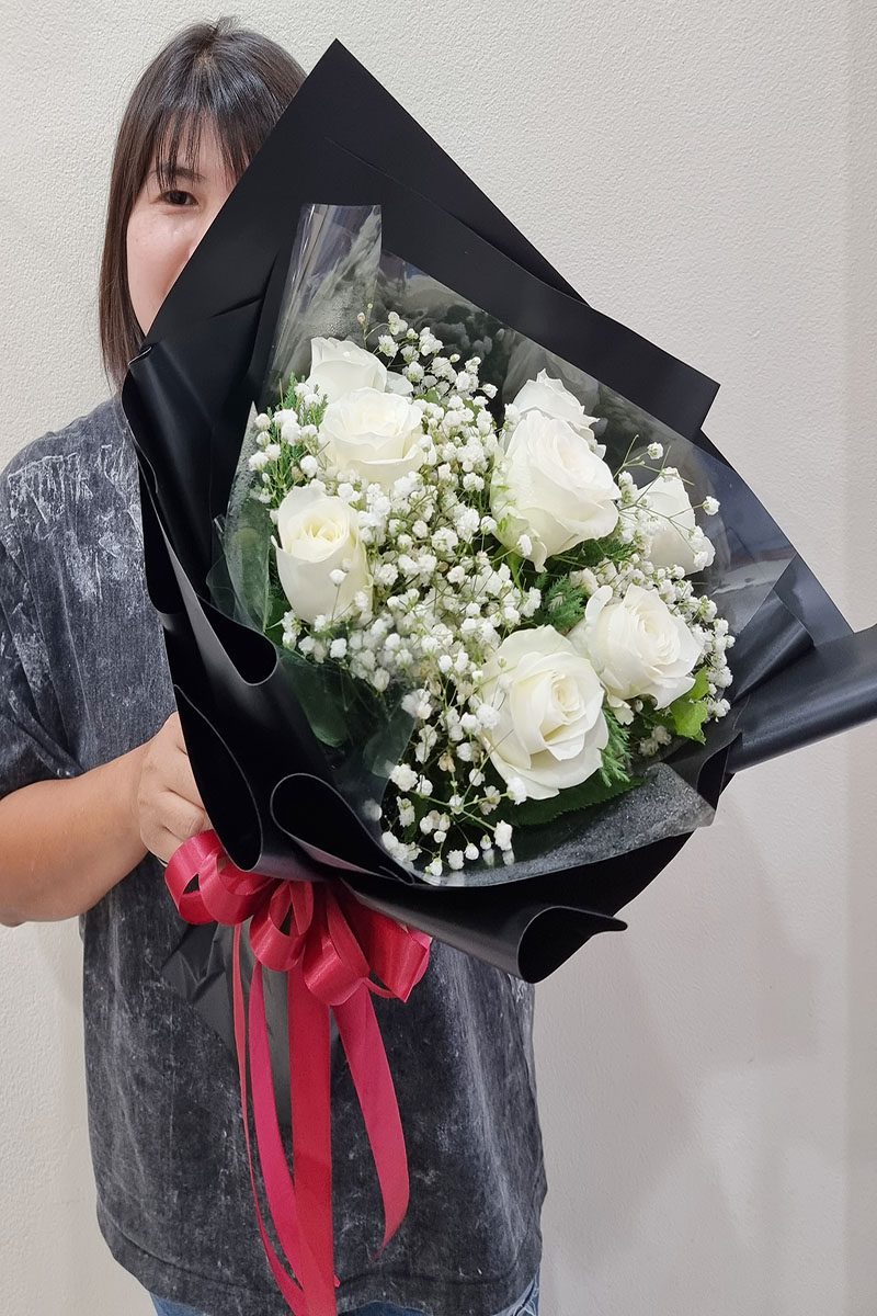 ช่อดอกกุหลาบสีขาว 6 ดอก